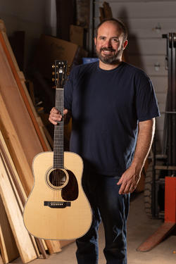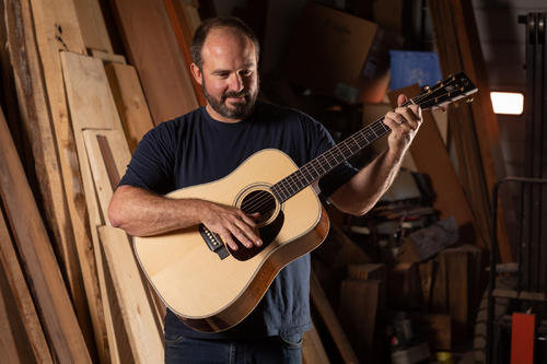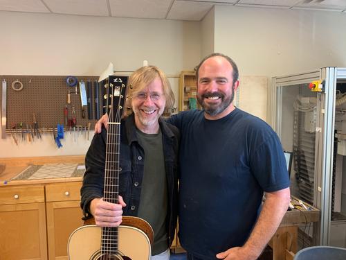 “Aside from my wedding day and children being born, Friday was one of the best days of my life,” Buchwald shared. “We had the pleasure of having Trey Anastasio and Page McConnell of Phish stop by the shop. Over the past few months we have been secretly making Trey a guitar from Page for a birthday gift. I went into the private stock and picked out the nicest Koa and German Spruce we had. Page gave him the guitar on Friday and Trey loved it so much he came to the shop to meet and play it for us before jetting out of town.